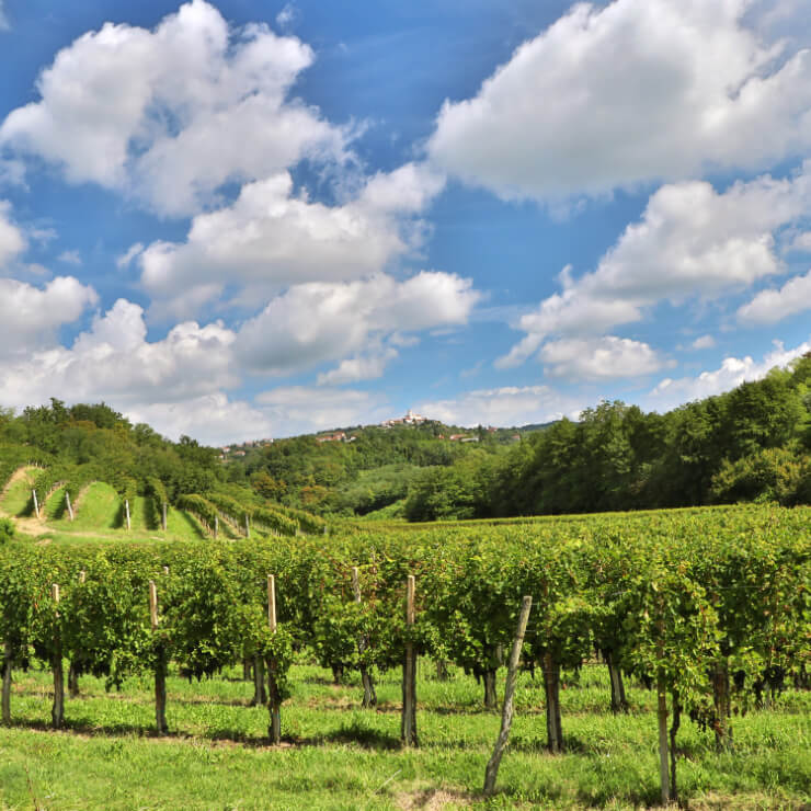 Pahorkatina Brda. Malebná západní výspa Slovinska. Vůně blízkého Středozemního moře se zde mísí s alpskými vánky a vytváří neopakovatelné klima pro pěstování révy vinné.